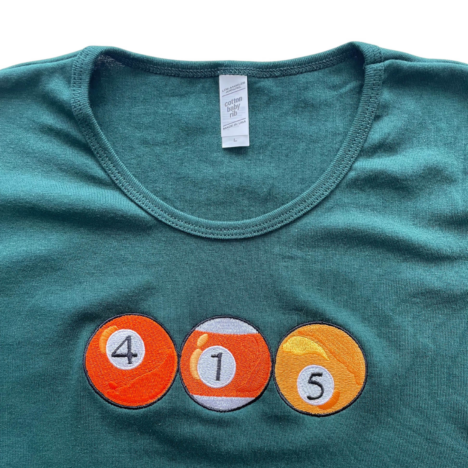 The 415 deserves some love too! Thank you for being patient with me SF peeps. Did you know that the design is pretty accurate in terms of colors and numbers? The 4 ball is actually purple and the striped blue ball is a 10 but I made it a 1 and the 5 is actually an orange ball. Close enough!