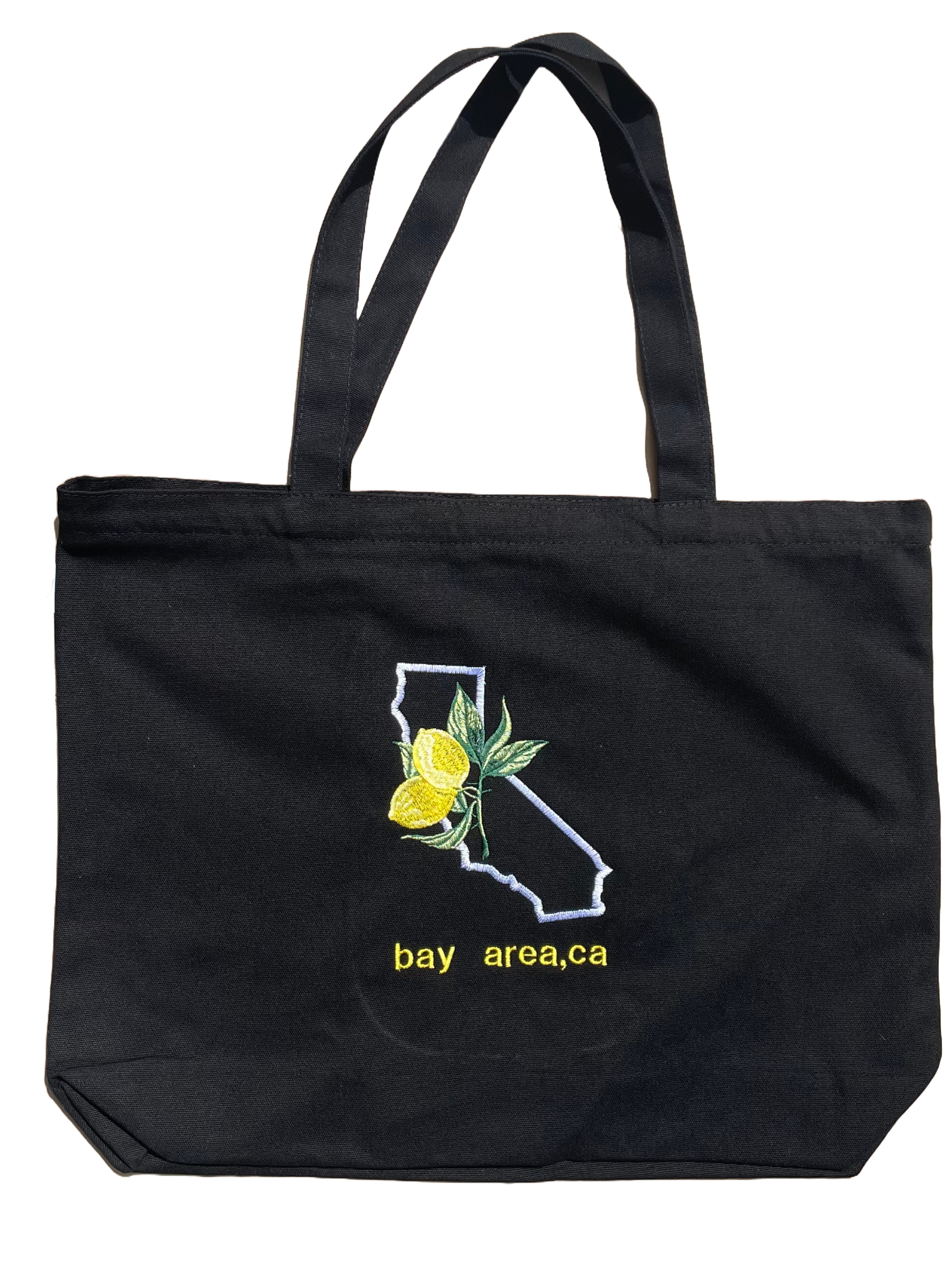 This beautiful 9oz zippered tote bag is suitable for your grocery trips, overnight stays, or book haul at Barnes and Noble. Let everyone know you from the Bay Area, California by rocking this large black tote. There is also a small label on the side of the bag to let everyone know it was from Lemonade51o.