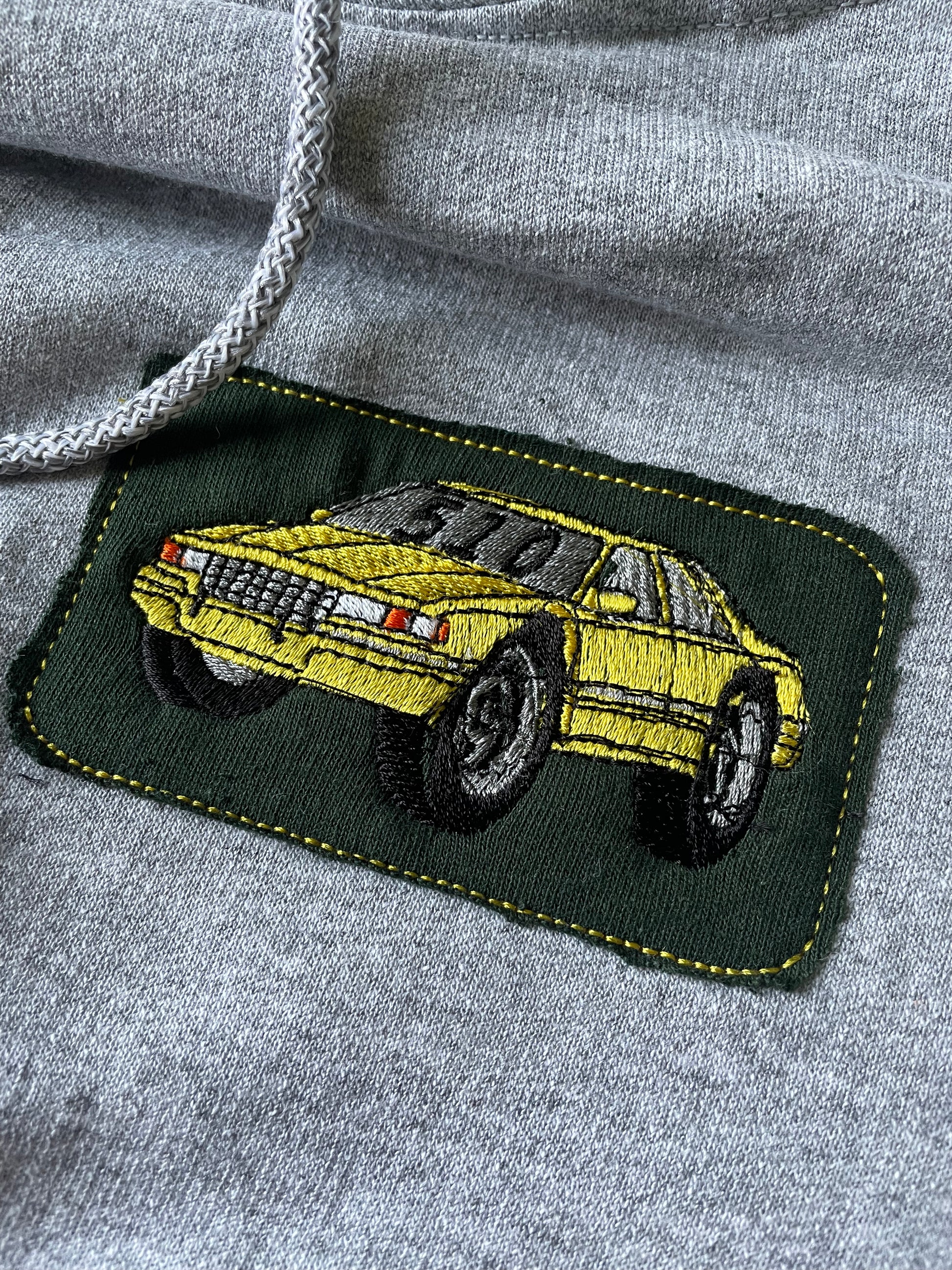 Embroidered by Jade Lemonade in Oakland. Patch fabric is reused from unsalvageable t-shirts.